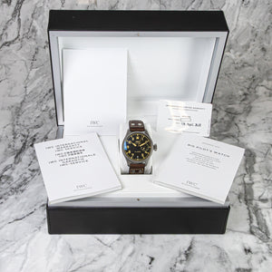 Im Inneren arbeitet das hauseigene IWC Manufakturkaliber 52110 mit automatischem Aufzug, Pellaton-Aufzugssystem und einer beeindruckenden Gangreserve von 7 Tagen (168 Stunden). Die Gangreserveanzeige befindet sich gut ablesbar auf der Zifferblattseite. Das mattschwarze Zifferblatt mit großen, beigefarbenen Leuchtziffern und -zeigern sorgt für perfekte Ablesbarkeit – selbst bei schlechten Lichtverhältnissen.