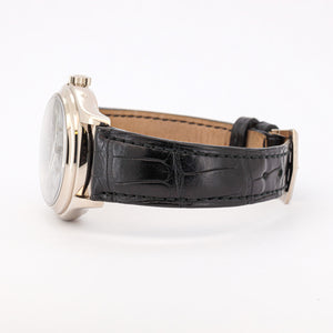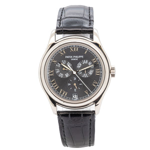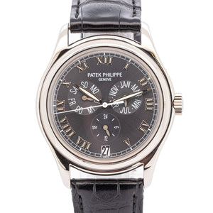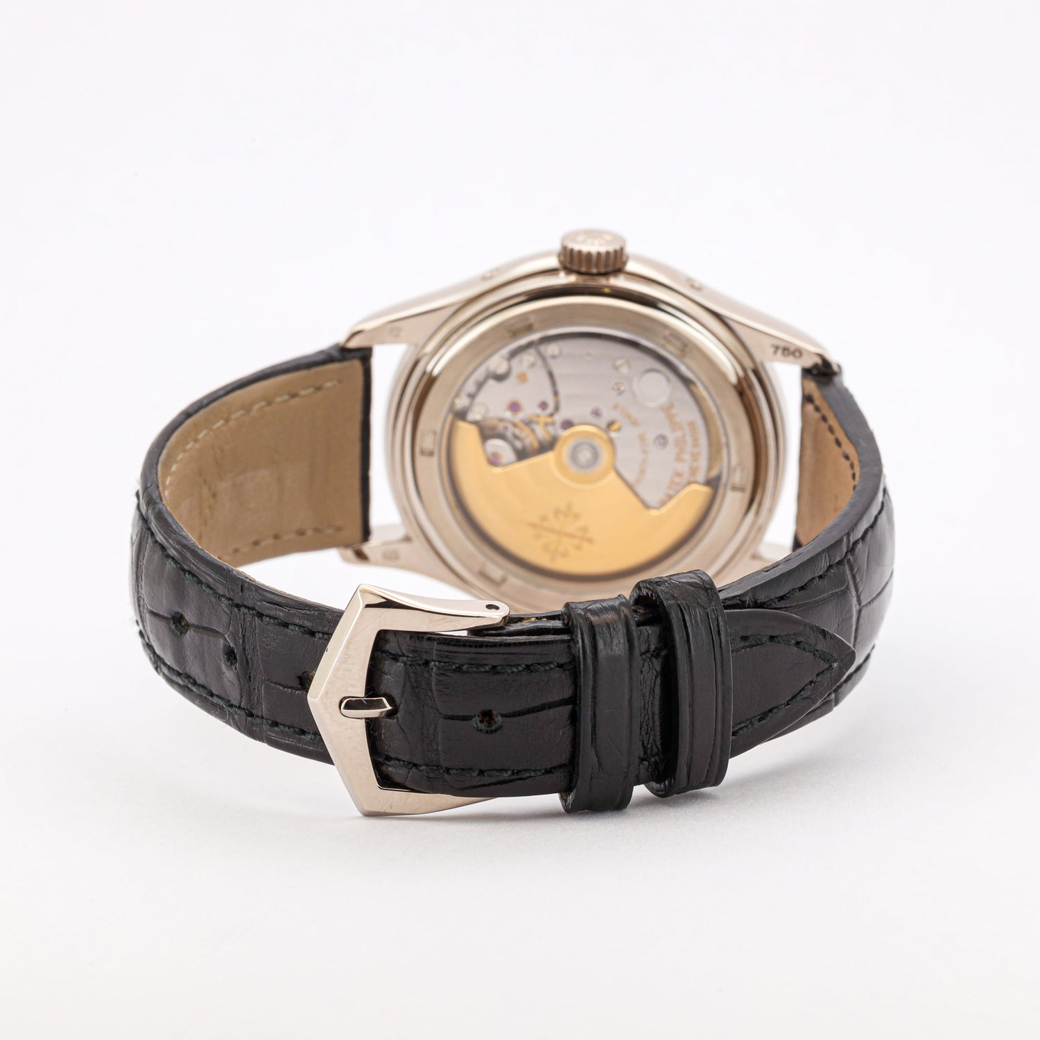 Die Patek Philippe Annual Calendar 5035G gilt als eine der bedeutendsten Kreationen der Marke – sie war die weltweit erste Armbanduhr mit Jahreskalender, präsentiert 1996. Dieses elegante Modell in 18K Weißgold kombiniert technische Innovation mit zeitloser Ästhetik und ist heute ein gesuchter Klassiker unter Sammlern.