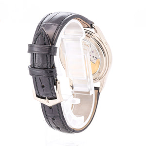 Das schwarze Zifferblatt verleiht der Uhr eine besondere Tiefe und Eleganz. Die ausgewogene Gestaltung mit den drei Anzeigen – Datum, Wochentag und Monat – sowie der 24-Stunden-Subdial sorgt für optimale Ablesbarkeit. Das 37-mm-Gehäuse bietet eine harmonische Präsenz am Handgelenk und trägt sich dank seiner schlanken Proportionen äußerst komfortabel.