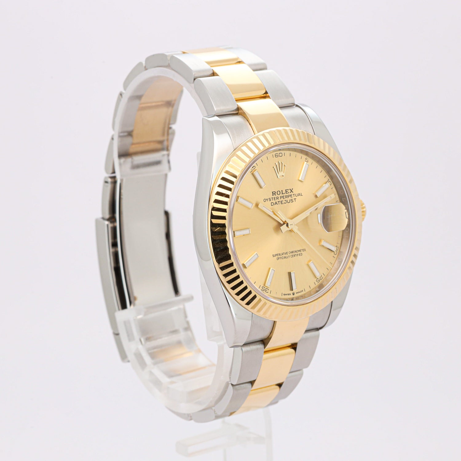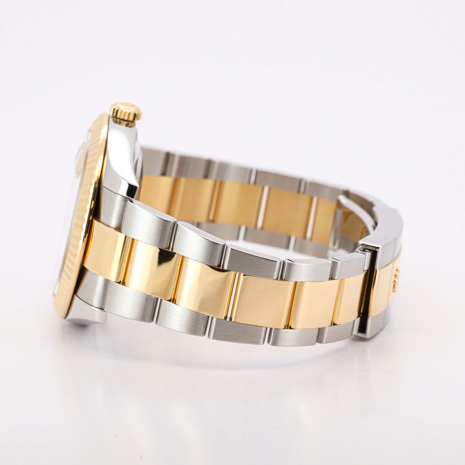Getragen wird die Uhr an einem zweifarbigen Jubilee- oder Oyster-Band aus Edelstahl und 18 Karat Gelbgold, das dank der Oysterclasp-Faltschließe und dem Easylink-Komfortverlängerungssystem höchsten Tragekomfort bietet.