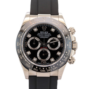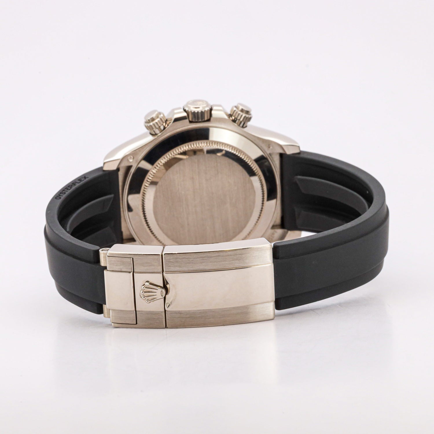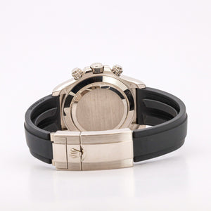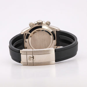 Die Rolex Cosmograph Daytona Referenz 116519LN ist eine Ikone sportlicher Eleganz – ein Meisterwerk aus edlem 18 Karat Weißgold, das Luxus und Performance perfekt vereint. Mit ihrem markanten 40 mm Gehäuse und der charakteristischen schwarzen Cerachrom-Keramiklünette mit gravierter Tachymeterskala verkörpert sie die Verbindung von Rennsport-DNA und zeitloser Ästhetik.