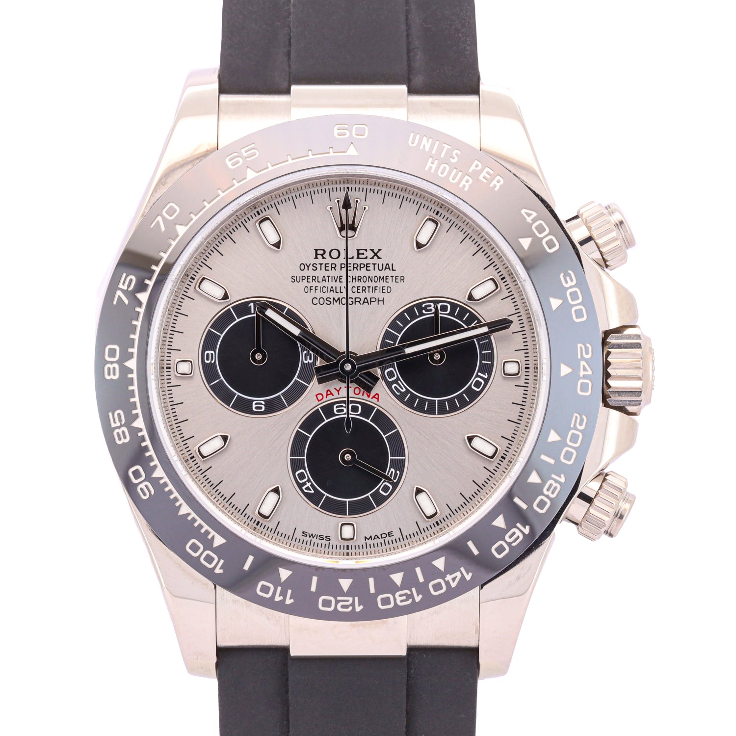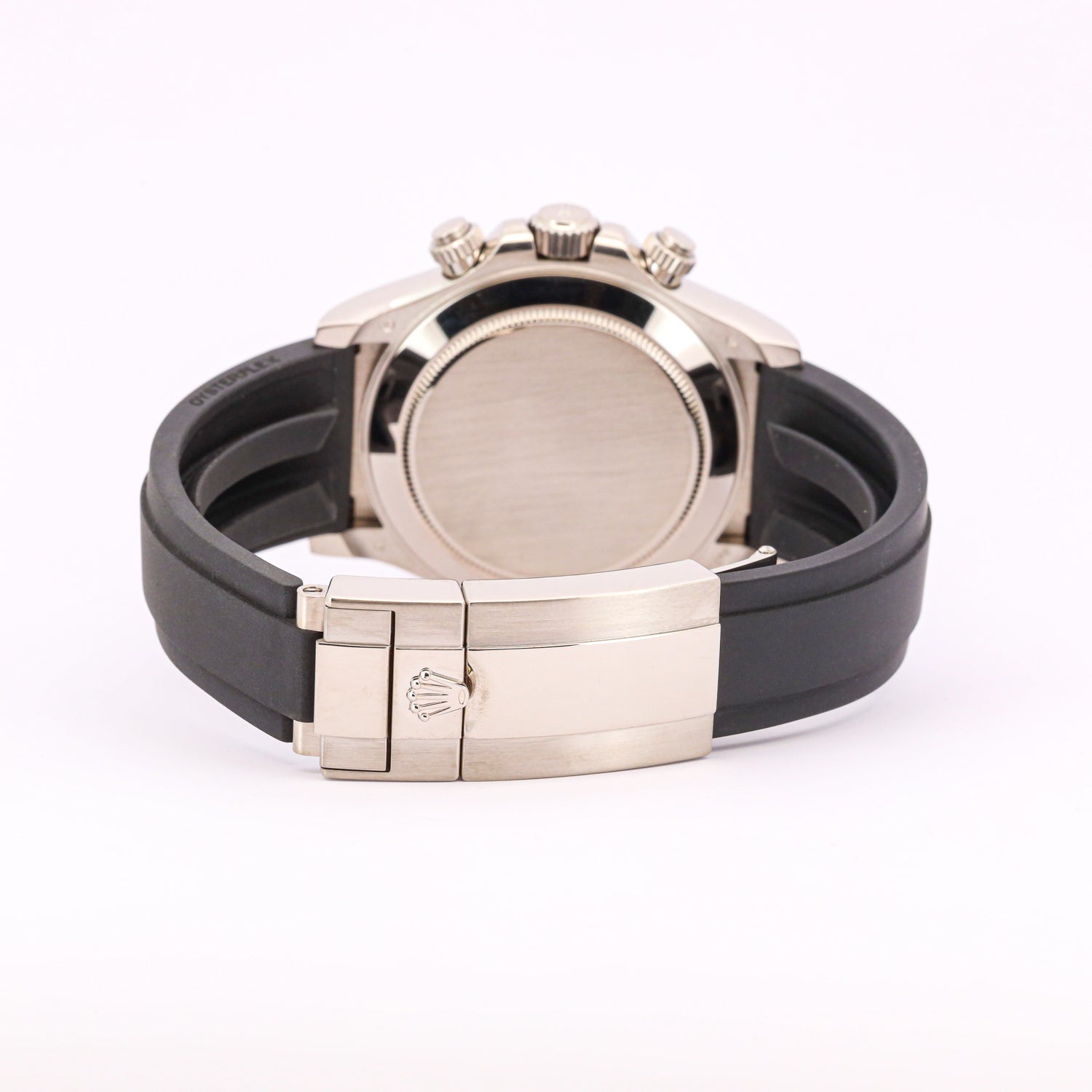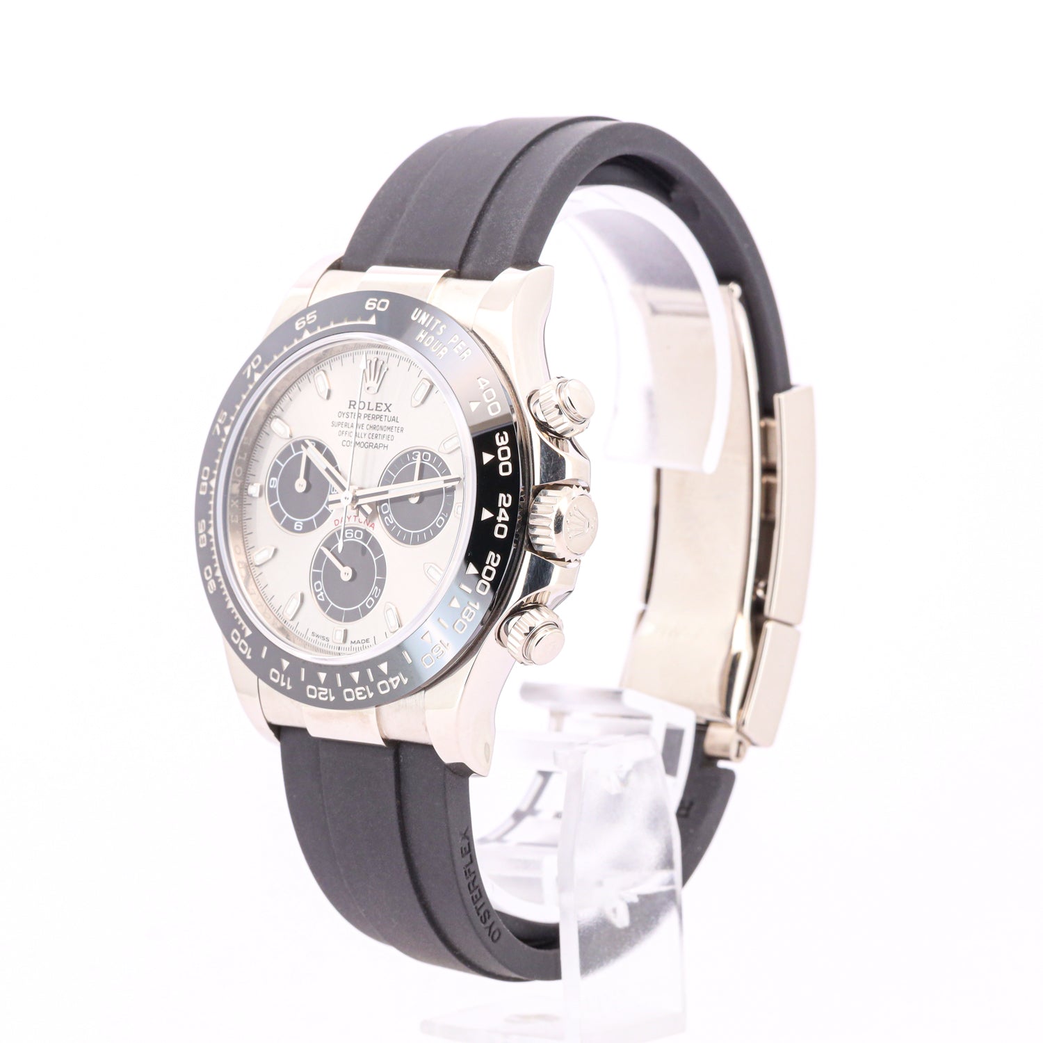 Zum Verkauf steht eine außergewöhnliche Rolex Cosmograph Daytona Referenz 116519LN aus 18 Karat Weißgold mit dem begehrten „Ghost“-Zifferblatt und sportlichem Oysterflex-Armband. Diese Variante zählt zu den elegantesten und zugleich sportlichsten Daytona-Ausführungen und ist bei Sammlern wie Liebhabern gleichermaßen äußerst gefragt.