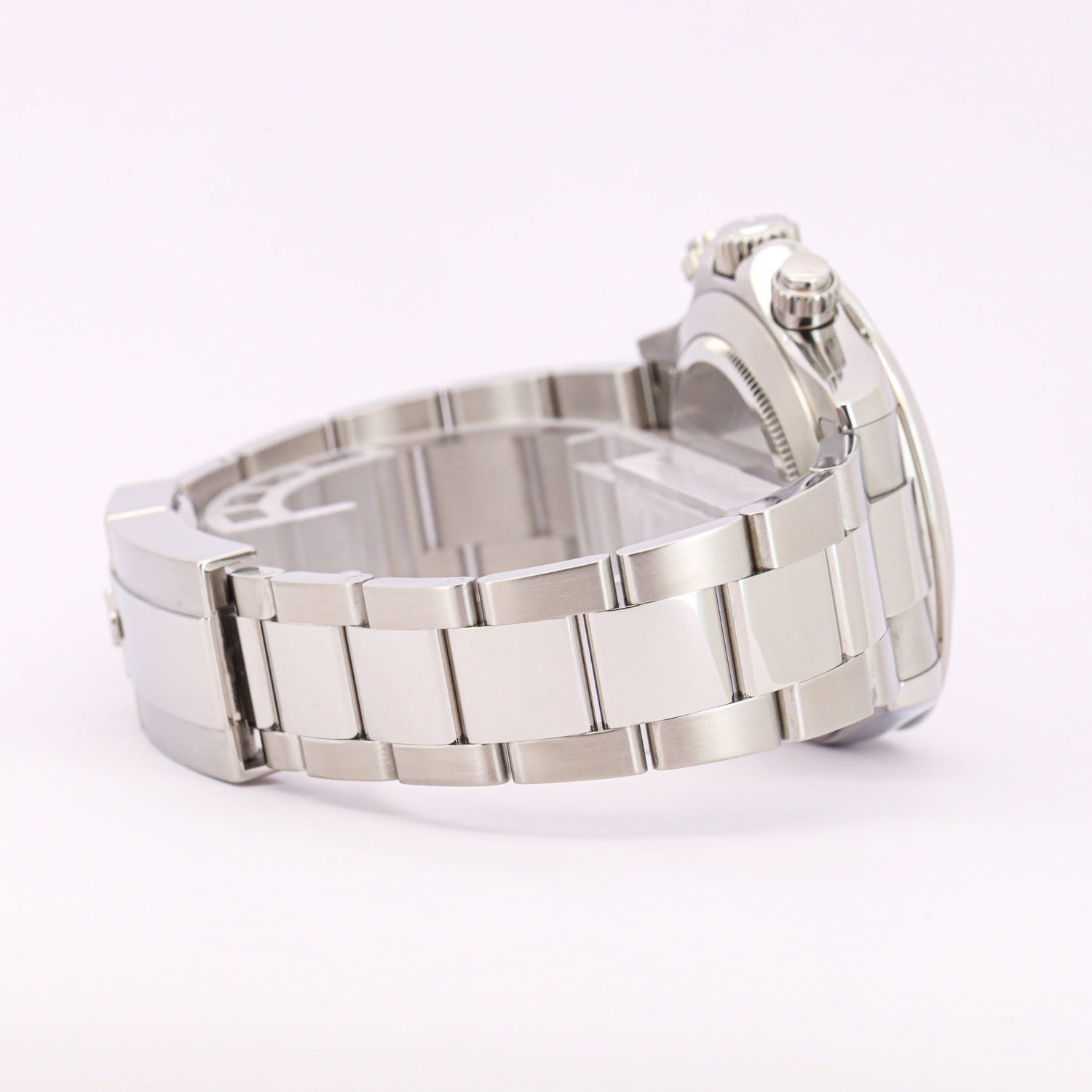 Im Inneren arbeitet das bewährte Rolex Manufakturkaliber 4130, ein automatisches Chronographenwerk, das für seine Zuverlässigkeit, Präzision und Effizienz bekannt ist. Die verschraubten Drücker sowie die verschraubte Krone garantieren eine Wasserdichtigkeit bis 100 Meter.