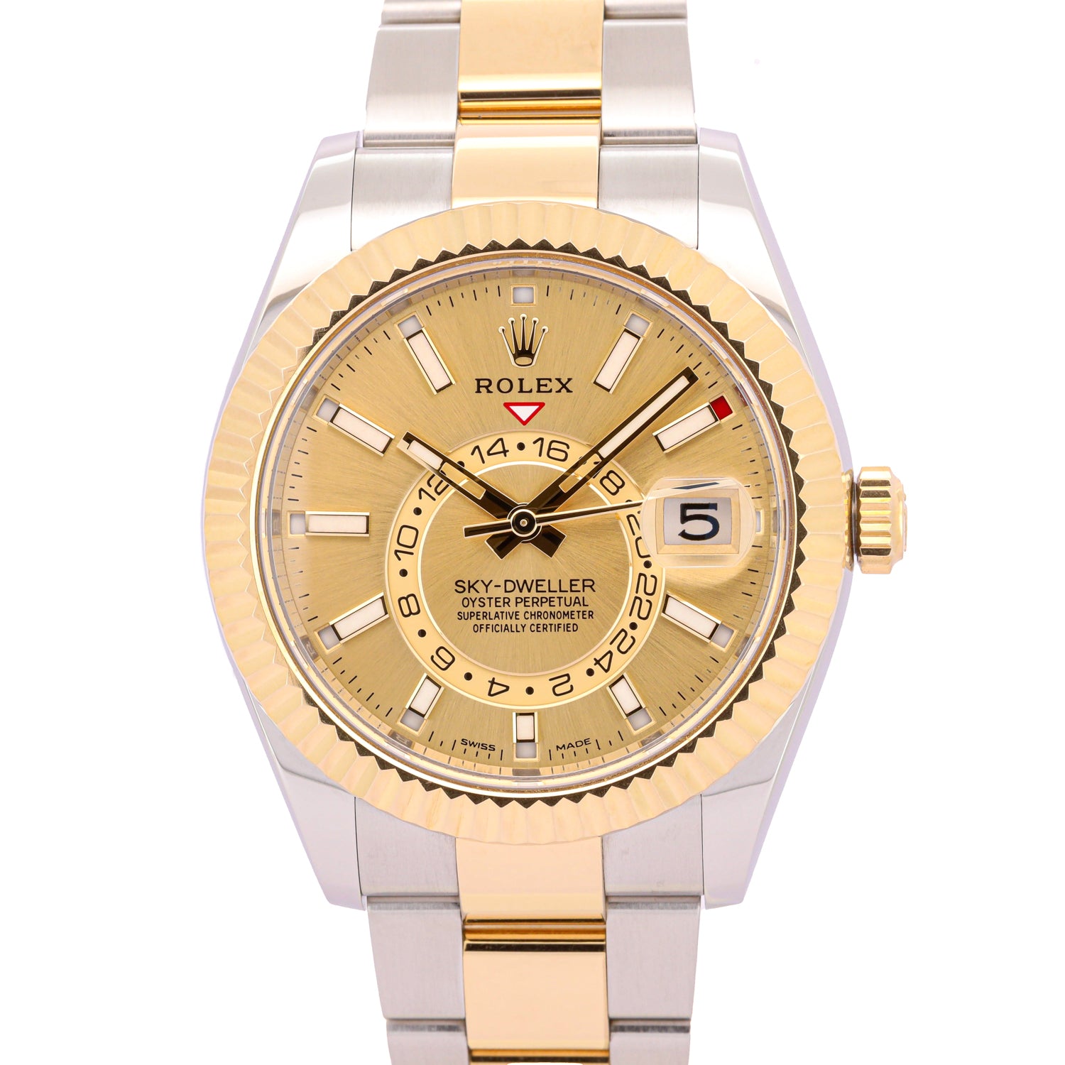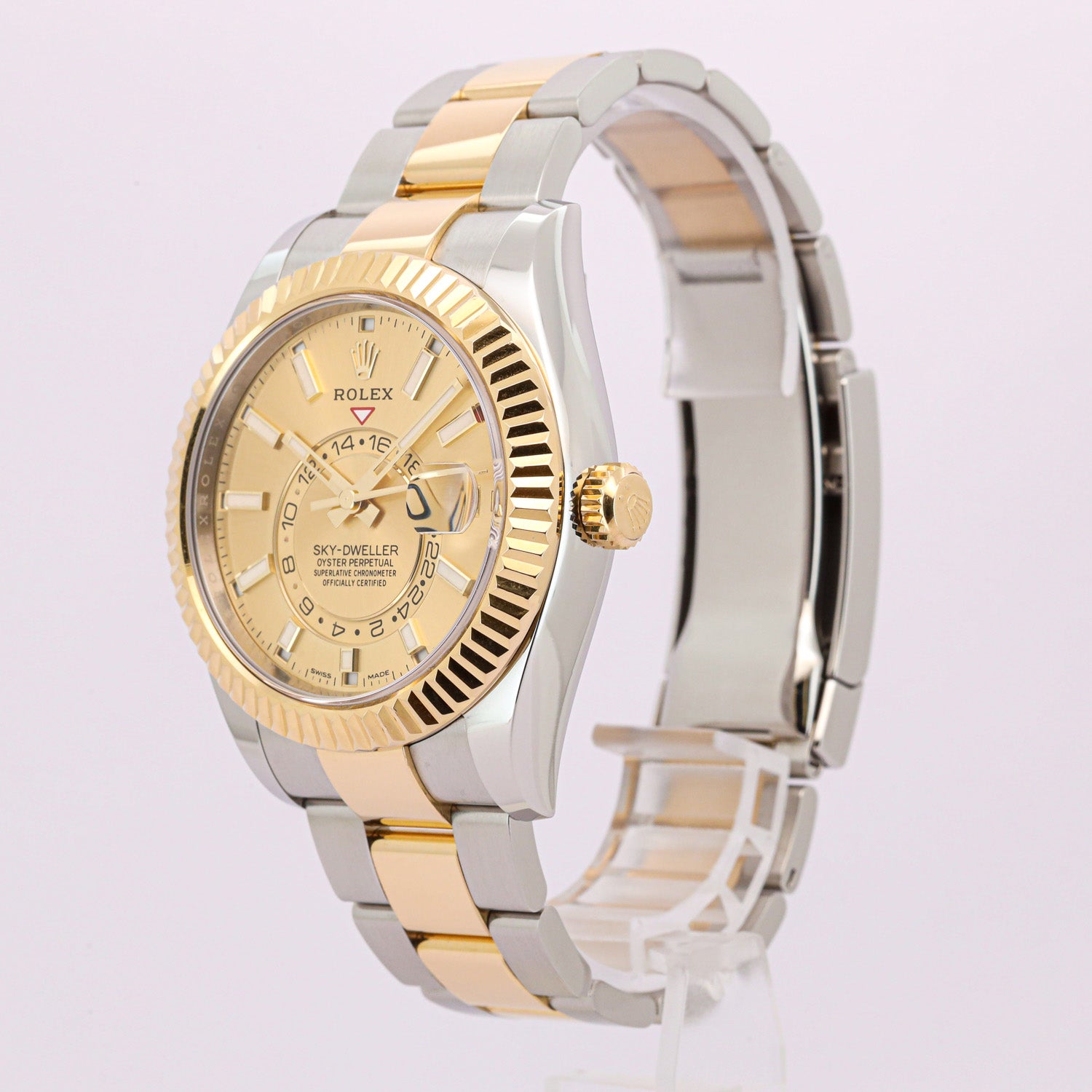 Abgerundet wird diese außergewöhnliche Uhr durch das robuste und zugleich elegante Oysterband aus Edelstahl und Gelbgold mit Oysterclasp-Sicherheitsfaltschließe, das einen hohen Tragekomfort sowie maximale Sicherheit garantiert. Mit einer Wasserdichtigkeit bis 100 Meter ist die Sky-Dweller auch im Alltag und auf Reisen ein souveräner Begleiter.