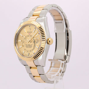 Die Rolex Sky-Dweller 326933 zählt zu den technisch anspruchsvollsten und zugleich eindrucksvollsten Modellen der Marke Rolex. Entwickelt für Vielreisende und anspruchsvolle Uhrenliebhaber, verbindet sie höchste Funktionalität mit einer luxuriösen, sportlich-eleganten Erscheinung. In der edlen Rolesor-Ausführung aus Oystersteel und 18 Karat Gelbgold wirkt dieses Modell besonders exklusiv und zugleich absolut alltagstauglich.