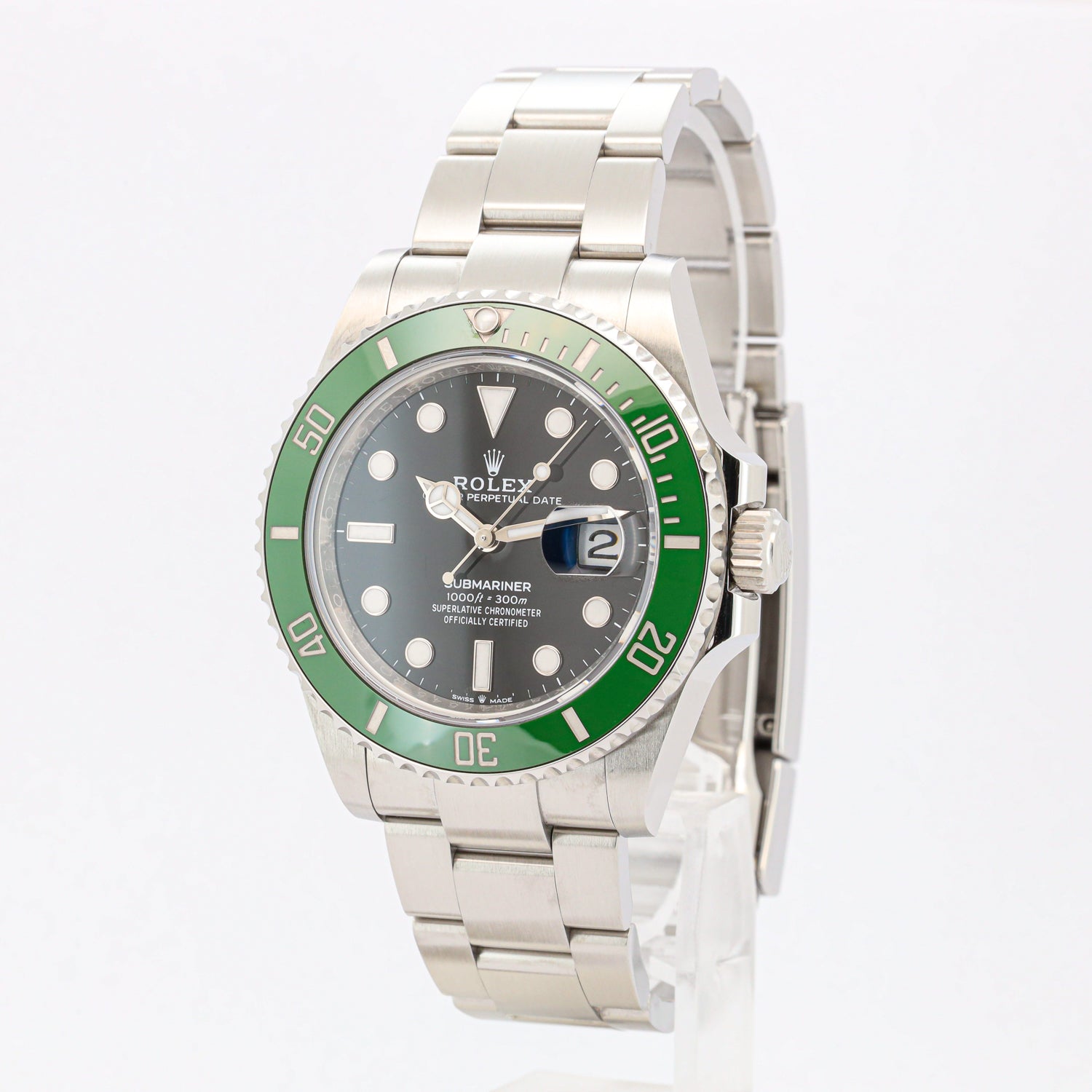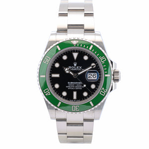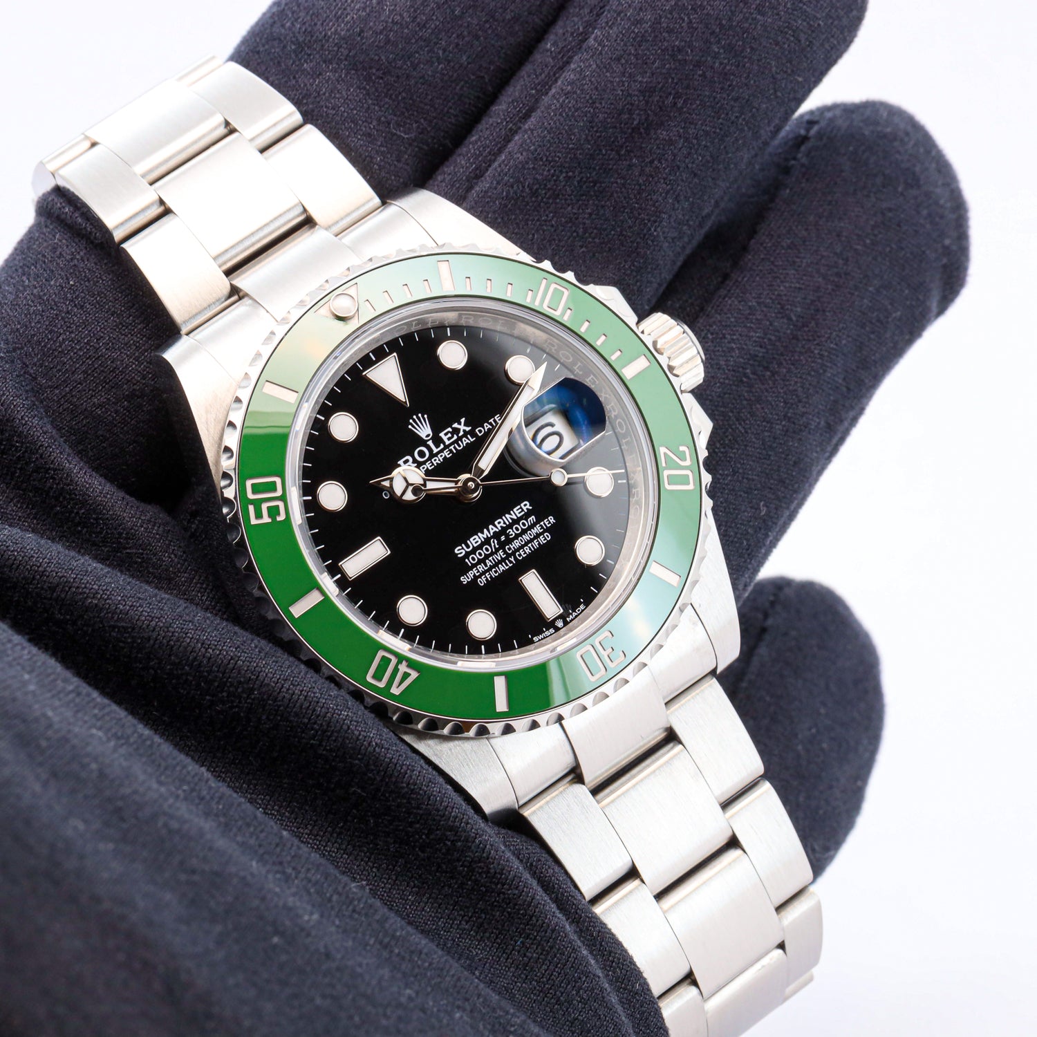 Erleben Sie eine der begehrtesten modernen Submariner-Referenzen: die Rolex Submariner Date 126610LV, von Sammlern liebevoll „Starbucks“ genannt. Diese ikonische Taucheruhr kombiniert das klassische schwarze Zifferblatt mit der markanten grünen Keramiklünette (Cerachrom) und verbindet so zeitlose Eleganz mit sportlicher Präsenz.