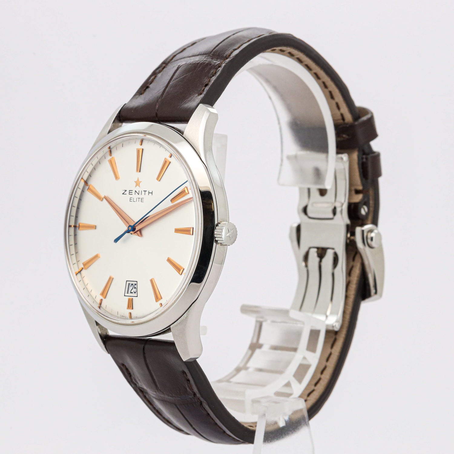 Die Zenith Captain Central Second Elite, Referenz 03.2020.670, steht für klassische Eleganz und feinste Schweizer Uhrmacherkunst. Ihr zeitloses Design und das präzise Manufakturwerk machen sie zu einem perfekten Begleiter für jeden Anlass – dezent, elegant und technisch herausragend.