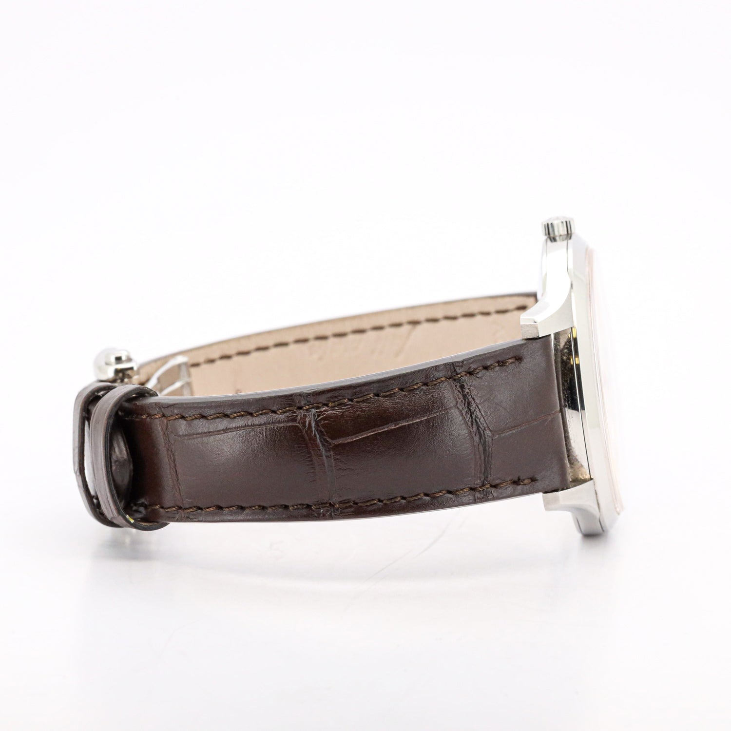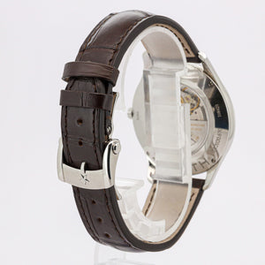 Abgerundet wird die Uhr durch ein hochwertiges Lederarmband mit Edelstahlschließe, das optimal zum eleganten Gesamteindruck passt.