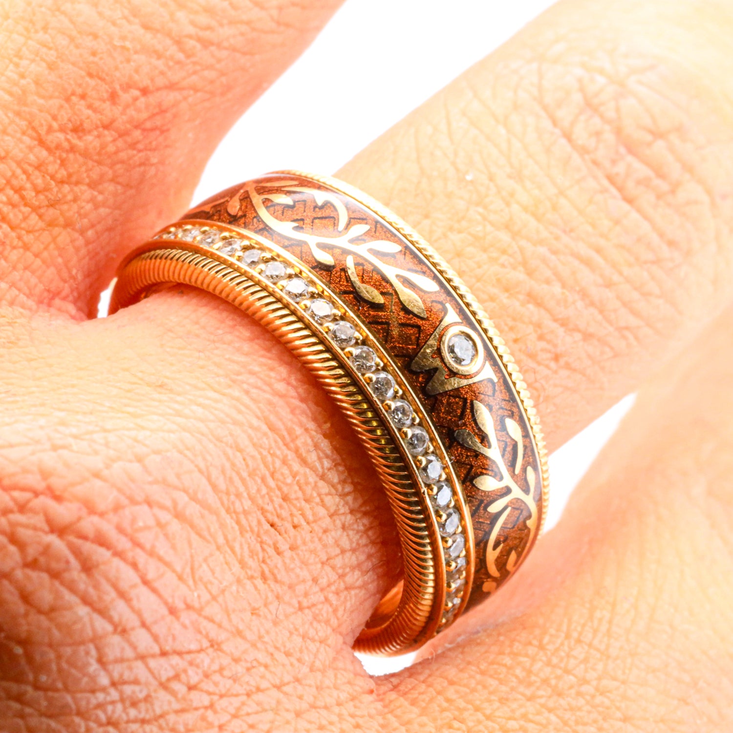 Dieser exklusive WELLENDORFF Ring „Karamel“ vereint höchste deutsche Goldschmiedekunst mit einem einzigartigen Design. Gefertigt aus edlem 18K/750 Gelbgold, beeindruckt der Ring durch seine warme, karamellfarbene Emaille, die ihm seinen charakteristischen Namen verleiht und für eine unverwechselbare Tiefe und Leuchtkraft sorgt.